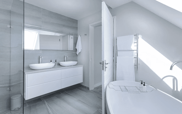 Additionally, you should add built-in shelves or cabinets to ensure that items are well organized. Other useful furniture pieces serve multiple functions, like cabinetry hidden beneath a vanity. They make your bathroom practical and beautiful, which is as important as functionality.
